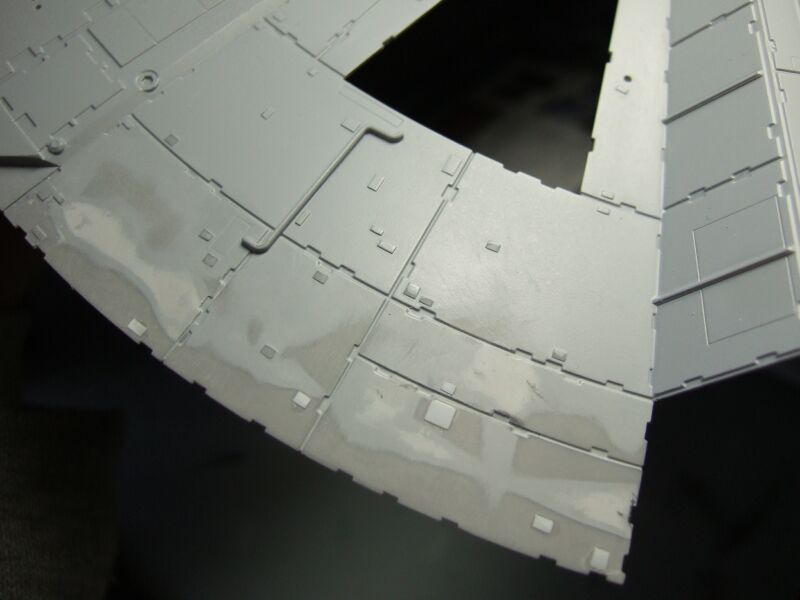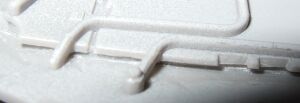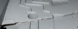 最初に気になったのは、ボディーのヒケ。だいたいはヤスってごまかしたが、いくつかはパテのお世話になった。四角いモールドはヤスって消えてしまったんで、プラ版で再生。