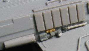 その下のごちゃメカは左側にだけある。それっぽく適当にジャンクパーツを切り貼り。プロップとかなり違うけど気にしない。