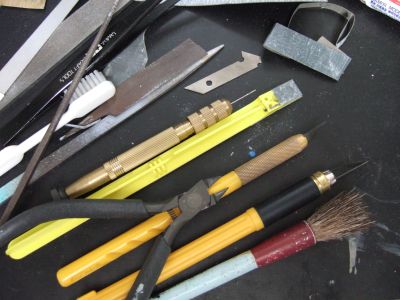 ネタがないので道具の紹介でも。ヤスリはやはり金属用(木工用?)がよいみたい。TAMIYAのクラフトヤスリ?やHASEGAWAのダイヤモンドヤスリは、なぜか削れてくれない。あと習字用の筆は、ホコリ払いに便利で中学生時代から愛用。