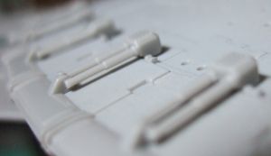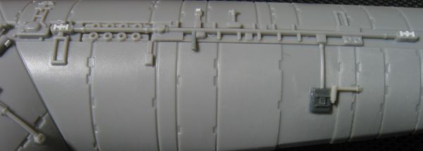 後で気になるといけないので、とりあえずパーティションラインは消す。数が多いのでとにかく面倒。プロップでは、上側のBOX上の部分は、横に丸いモールド、上には四角いモールドがついていて、リベット上のモールドは見受けられないんだけど、もういい。もし気が向いたら手を入れる。