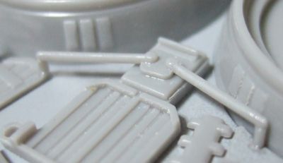 ここにはこんな形のパーツがつく。厚みやディテールが足りないけど、とりあえず形だけ似せたものを貼っておく。