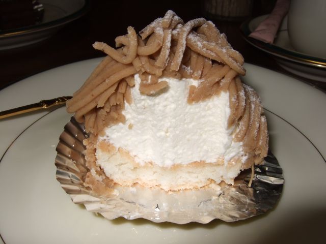 今回のは、いままでここに載せた3つの中では一番さっぱりしていて食べやすい。栗のデコレーション(なんでいうんだ?)がなんというか素材のままの味っていう感じで意味なく好印象。でもこれだけさっぱりしてても2個目は行きたくないなと思うのは歳のせい?★★★