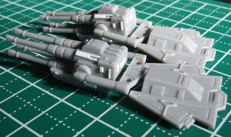 貼り付けるプラ板が厚すぎたかも。上側の銃身付け根に2つ細い棒状のものをつけてるけど、プロップはでっぱってるんじゃなくて溝状にへこんでる。