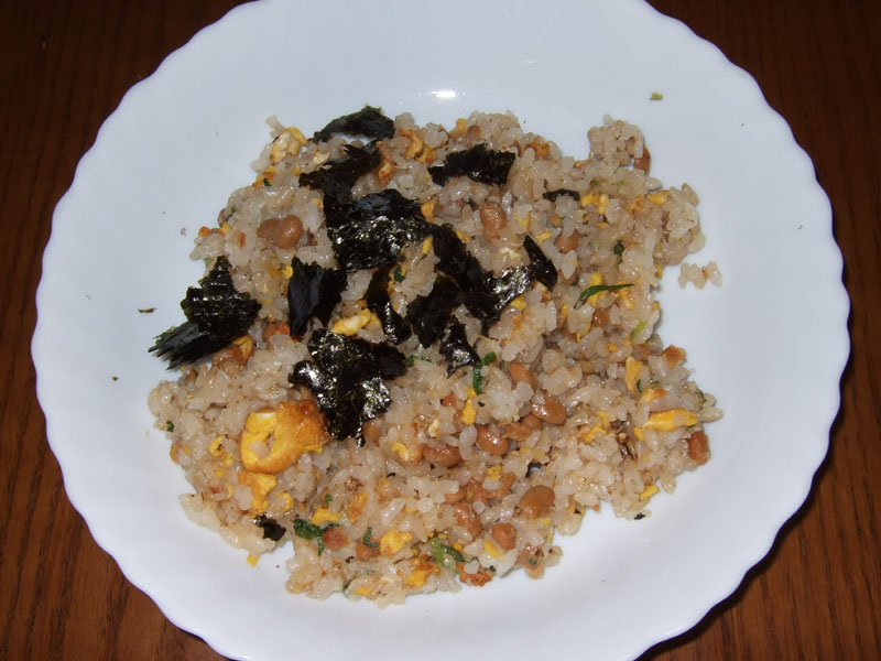 ④ご飯を適当にいれてよく混ぜながら、塩コショウを適当に振って味付けする。