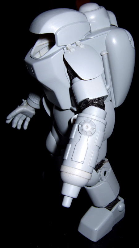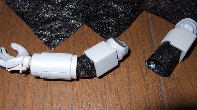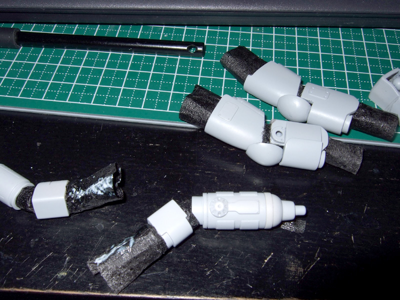 全部やるとこんな感じ。海苔巻のようである。膝間接はせまくてうまくいかず、かなり汚くなった。肩の部分はゴム系のいわゆる鼻くそボンドでくっつけた。