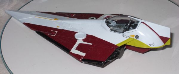 だいぶデカール貼りが進んだけどうまく貼れなくていいかげんになったJedi Star Fighter。