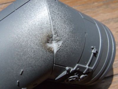 久しぶりに触ったミレニアムファルコン。本日は忘れていたコックピット部の弾痕?を再現。以前買ったポケトーチであぶったヤスリを押し当ててへこませ、最後に整形して完成。