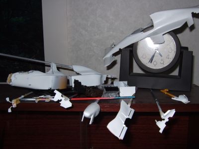で、何を作っていたかというと、こちらになります。サフの上からガイアカラーの白をエアブラシしてみたんだが、そんなに隠ぺい力強いかな?などと考えながらビンを見て今気づいた。こいつはつや消し白だった!この上から塗ってきちんとつやが出るんだろうか?・・・まあいい。もう遅い。
