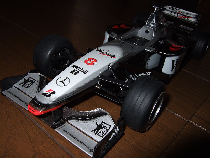 こちらは98年チャンピオンマシンのMP4/13。もう10年近くになるのか・・・。日本GP仕様にだけWESTデカールが付いていたんだったっけ。確かこいつは初めて研ぎ出しをやったやつだ。なんかスジが入っているが、クリア塗装が割れたのかな?