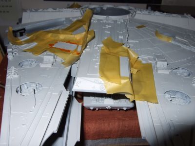 ニュートラルグレーを吹くためのマスキングテープ貼りの途中。