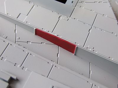ここも赤く塗ったんだけど、他の部分とは違う色(薄い)みたい。しかも四角いパターンが3つ縦に並んでる感じになってるんだが見落としていて単なる縦一本にしてしまった。気が向いたら直そう。