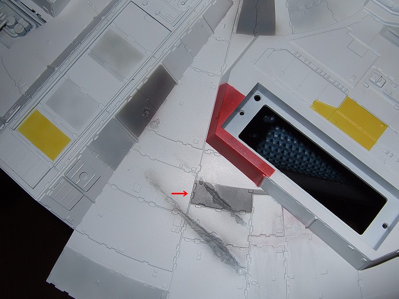 矢印の部分はニュートラルグレーを塗り忘れてたので追加。今度のエアブラシはエア圧の調整もできるので、かなり薄くしてもかなり少量からでも塗れるのがうれしい。