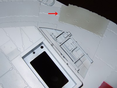 結構はみだしたり、ムラになったりしてるけど、プロップも案外いいかげんだし、よしとする。はみ出た部分はやすったりシンナーで溶かしたりしようとするとうまくいかなかったりするけど、なぜかコピックモデラーのブレンダーペンでなぞると皮一枚だけ結構取れたりする。お試しを。