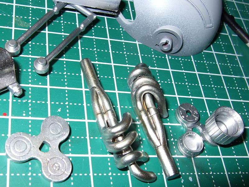 B192のエキパイを塗るんで、ついでにタコのレンズ部分とかの金属色を塗った。色はMr.COLORの159番スーパーシルバー。エキパイのほうは、あらかじめ黒を塗っておいたけど、タコのほうはそのままいったのでちょっと色ののりが悪かった。あと、エキパイにはゴールドもちょっとかぶせてみた。