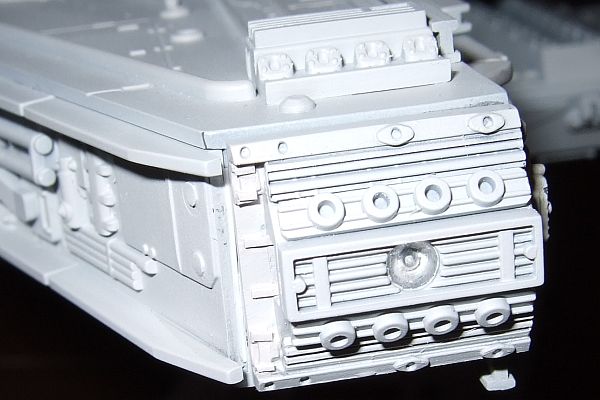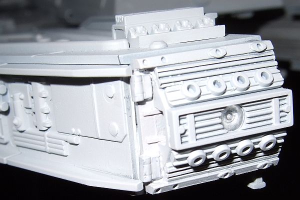 しかし、改めて見るとどうもプラ版で追加した部分が気に入らないので、以前からいろんなところで使っているTIGER Iの余りパーツを切り刻んで作り直した。