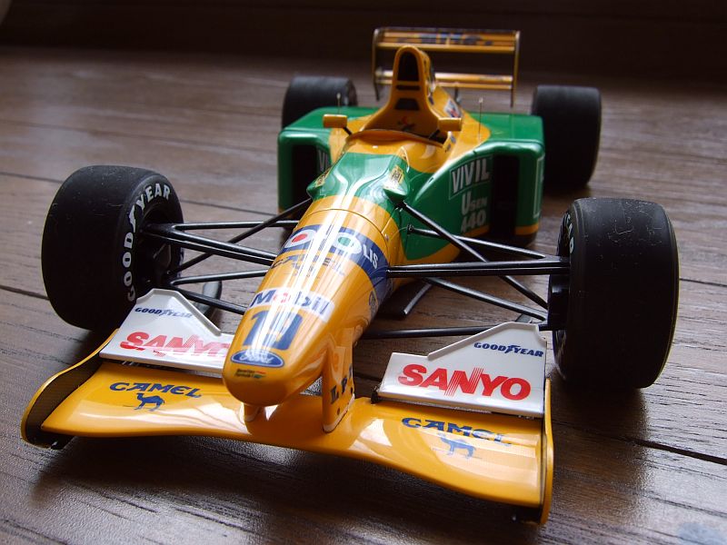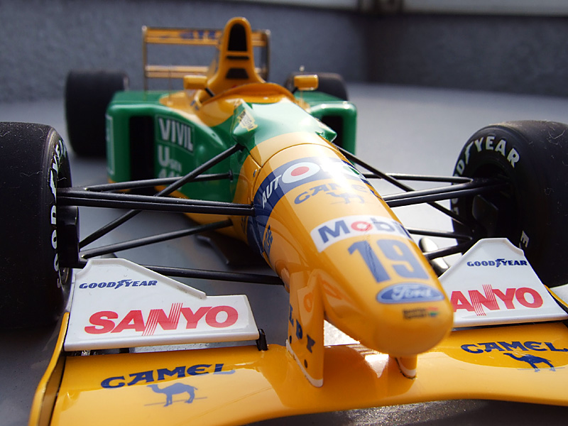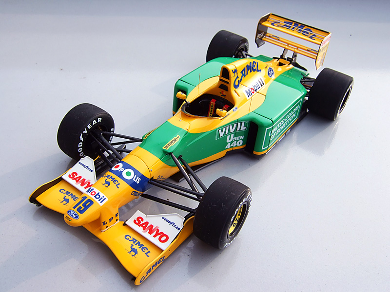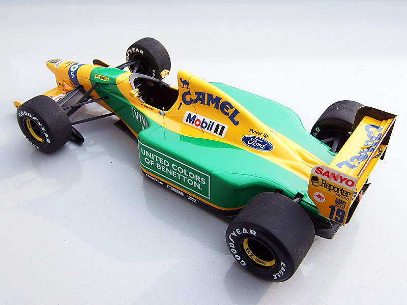 てことで、TAMIYA 1/20 BENETTON FORD B192 完成である。天気が悪かったので撮った写真の色を加工したのでモニターによってはちょっとどぎくみえるかも。