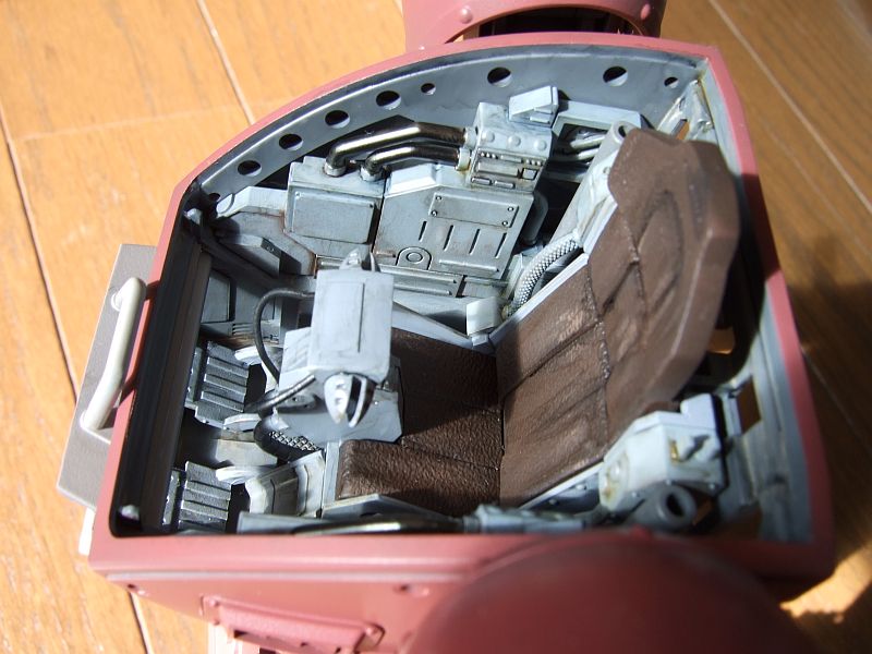 ついでにコックピット回りをコピックとガンダムマーカーで汚してみた。この機体がこんなに汚れてるはずないというのはおいといて、ガンダムマーカーはなかなか使えるかも。サンドブラウンはつや消しになってくれるし、バーントアイアンはこれが水性マーカーかというくらい黒鉄色になってくれる(写真のパイプのところ)。