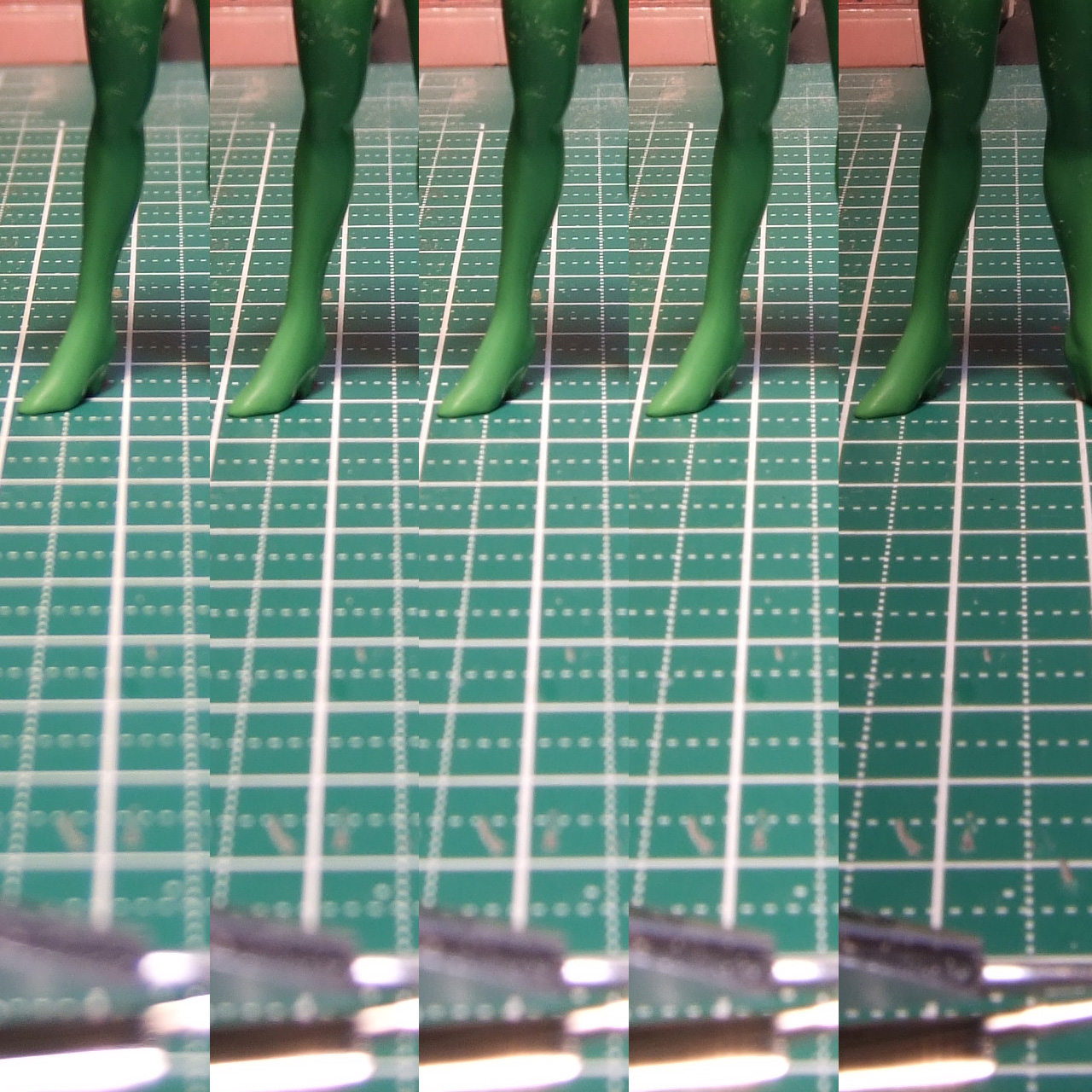 左から、F2.8、F3.6、F4.5、F5.6、F8。ピントがちょっと後にいってますね。あと、F8の時はシャッター速度がこれ以上あがらなくてちょっと暗くなってる。