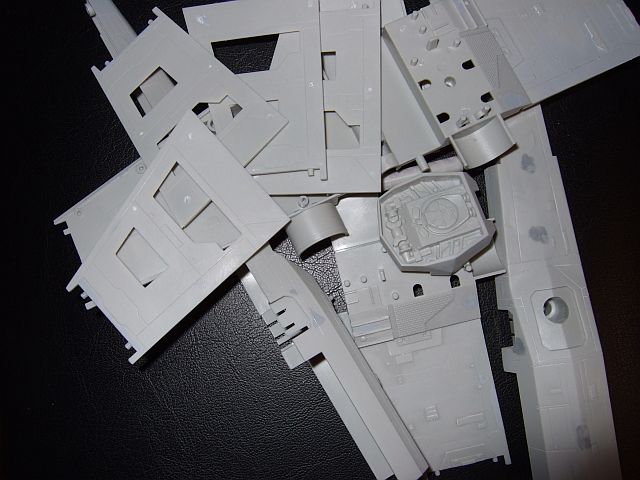朝積もってた雪も昼前には雨になって融けてしまった。以前は年に1、2回は10cmくらい積もってたんだが。今年も暖冬か・・・。てことで、やっとここまでパテ埋めすんだ。気力があれば、一旦四角いモールドを削って作り直すんだろうけど、素地を生かす方針(というか面倒なだけ)でやってない。とにかくパーツB9なんかはヒケがひどくていやになる。接着剤なしでパチ組みできるようにしたためなんだろうなと思いつつ、パチ組みでもあまりヒケの目立たないガンプラを作ってるバンダイの技術はあなどりがたしというところなんだろうと想像してみる。ヒケまで見越した金型がつくれるんだろうか。