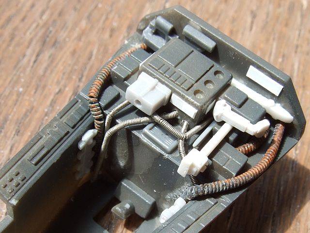 ギターの弦とジャンクパーツでコックピットにゴテゴテを追加。かなりいい加減。