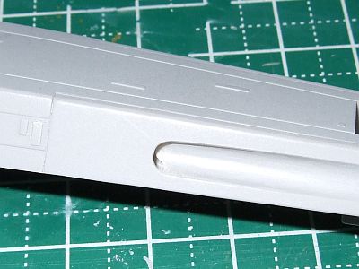 ここの処理を忘れてた。キットではなぜかプロトン魚雷の発射口の後端が角張っているので丸くした。Before Afterが無いのでわかり難いか・・・。でもなぜキットが角張っていたのかは不明。単なる抜きの関係か、それともそういうプロップがあるのか?