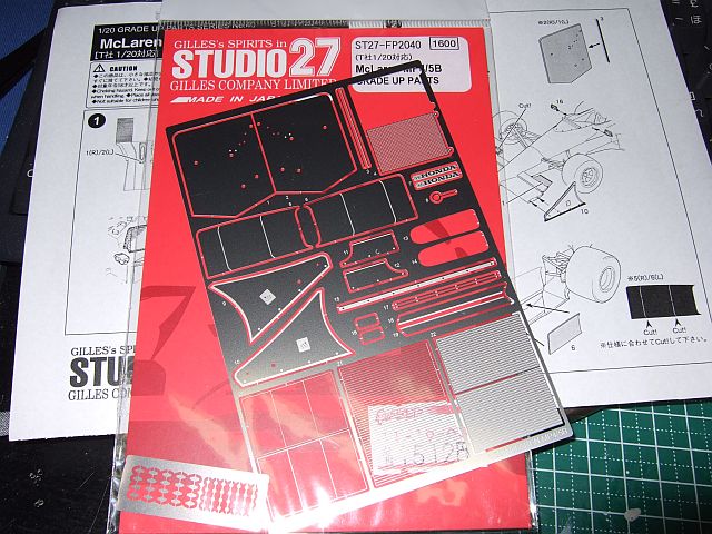 こんな雑な作り方をしてるのに、贅沢にもエッチングパーツを使ったりする。キットの再販時に店頭に一緒に並べてあったのを買っておいた、Studio27のもの。いろいろ付いてるんだが、曲げが必要なフロントウイングのパーツやら、実機の写真でもないと貼る位置がよくわからないパーツやらがあったりして、使いこなせない気がする。もったいないぞ。
