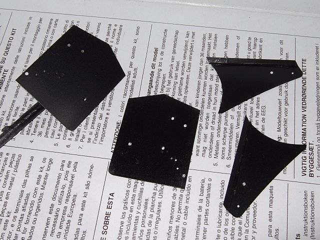 セミグロスブラックを塗ってしまった後で、改めて元のパーツを眺めてみると・・・リアウイング翼端版のパーツを貼る向きが違う!_| ̄|○仕方なくペイントリムーバーで塗装を剥がして貼りなおし。