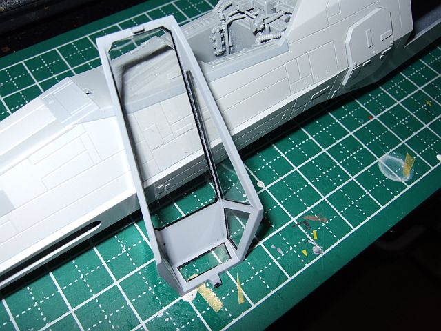 その後、裏側にコックピット内部色を、表側に308+115を吹いた。表側の色は、もう少し青緑っぽくてもよかったかも。