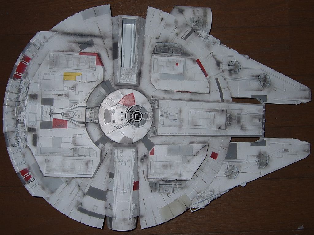 X-Wingを塗ったグレーが余ったので、ミレニアムファルコンの裏面にシャドウをつけてみた。