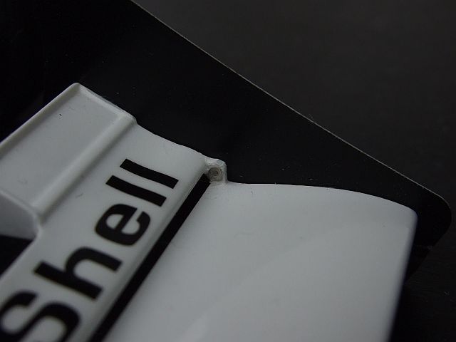せっかくなので、エッチングパーツについてきたこれを貼り付ける。ファスナーっていうんだっけか。ようは、カウルとボディーを止める金具だ。正確な位置がよくわからないので手持ちの実写写真で適当に割り出した。