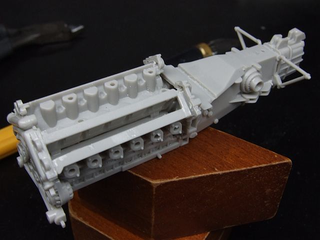 で、作り始めた。ここまで約1.5h。ここまで組んで、シリンダーカバーがきつくて削らないと入らなくなった。かちっと合うようで合わないので、やはりちゃんと事前に確認しないと。