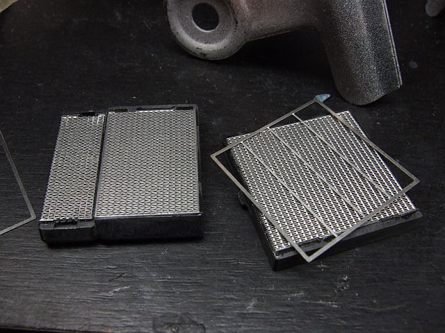 ラジエターにもエッチングパーツを貼った。しかし外枠は必要なのか?どの写真を見てもこんな形状の枠はないんだけど。もしかして内側に貼るとか??取説が不親切でよくわかりません。で、結局オミット。