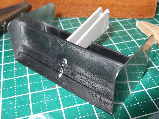 なんとかリアウイングの組み立てが完了した。はみ出した瞬間接着剤を削る時に何度かバラバラにしてしまったけど・・・。