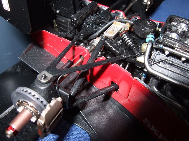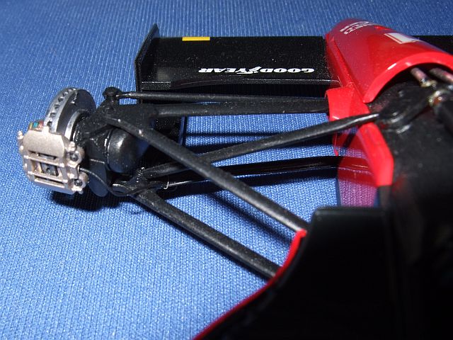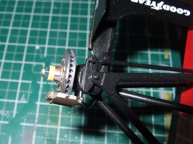 タイヤにGOODYEARのロゴを吹きつけた。MP4/5Bのときはうまくいかなくて何度もやり直ししたけど、今回はあまり苦労せずにできた。やっぱり塗料の濃度に問題があったみたい。なんか位置がずれてるけど、それはあまり気にしないことにする。