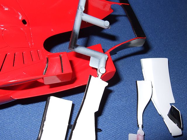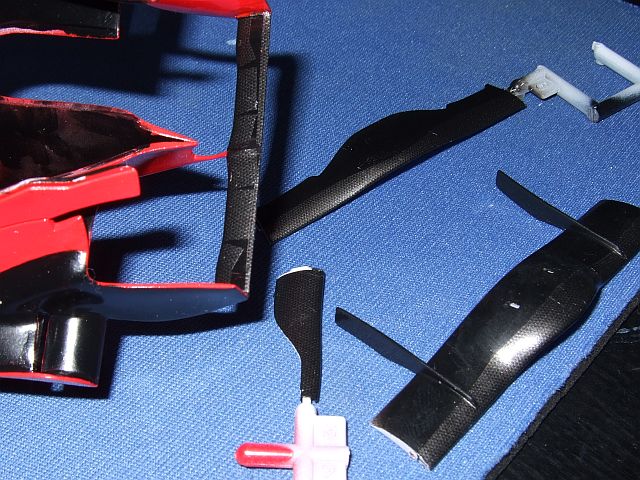 ウイングの裏とかにカーボンデカールを貼った。今回はスモークを吹かなくてもよいようにSTUDIO27の細目のやつを使ってみた。ウイングの前端にちょろっと見ればよかったんだけど、なんか出しすぎてしまった。