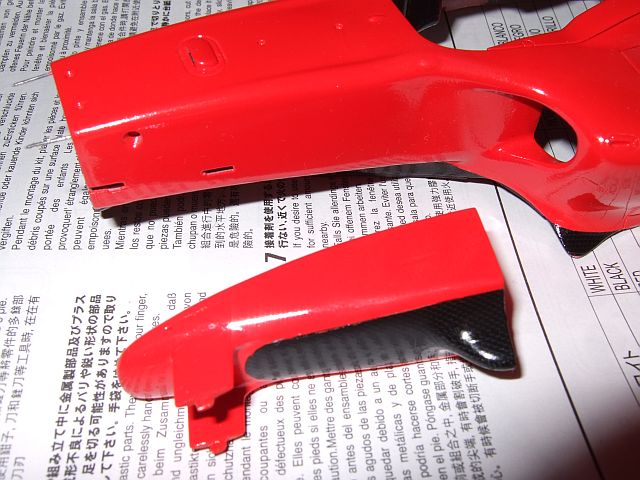 前回カーボンデカールを貼ったところにスモークを吹いて落ち着かせた。なんか非常に面倒なことをやってるような気がする・・・。