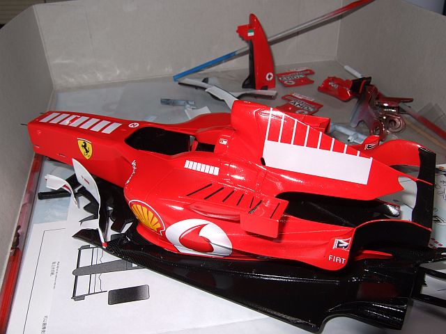 デカールを貼った。結局マルボロじゃなくてストライプにした。FUJIMIのカルトグラフのオプションデカールを基本に、ストライプ部はTABU DESIGNのをつかったんだけど、背びれの部分のデカール形状がなんか違ったんで一部カットが必要だった。マルボロが余ったけど、もう1台作る気力はないな~。