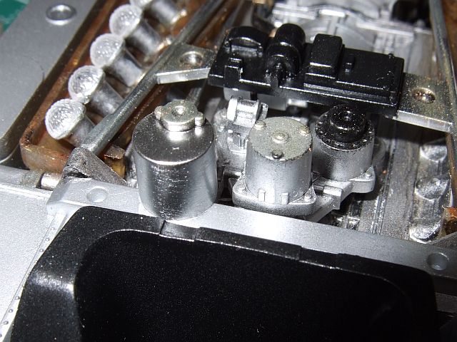 メッキシルバーの威力。8番シルバーとは全然違う。あとでちょっと色を乗せるとお手軽にそれらしくなる。今回田宮のウェザリングスティックを使ってみた。