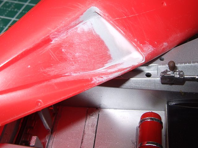 ボディーカウルのインテーク部分の継ぎ目消しは、缶スプレーのサフを筆にとって何度か重ね塗りして消してやった。
