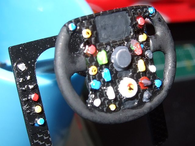 ステアリング。 なんかカラフルなボタンがいっぱいあって大変。拡大したら汚いな~。