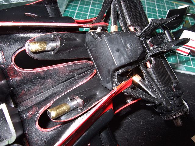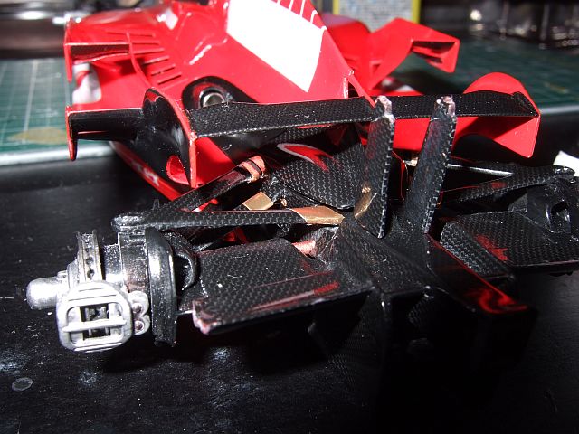 リアサスアームには、昔タミヤのF2001を作ったときに余ったゴールドのシールをそれっぽく貼った。