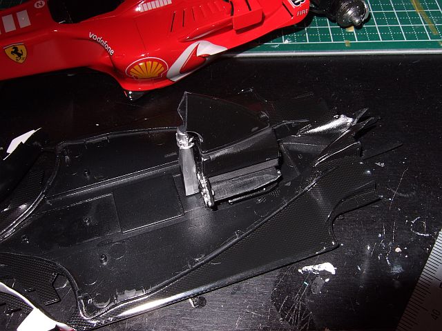 エンジンはアンダートレイ側に接着。エアダクトはちょっとカットしてはめやすくしておく。