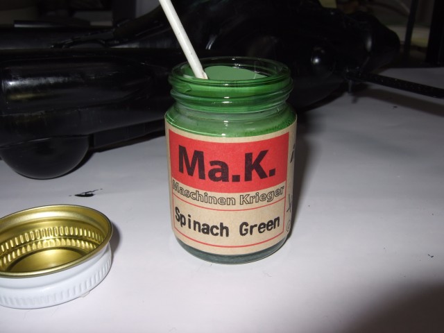 しばらく黒いままほったらかしにしておいたFALKEだけど、Ma.K.カラーのSpinach Greenが手に入ったんで、緑に塗ることにした。