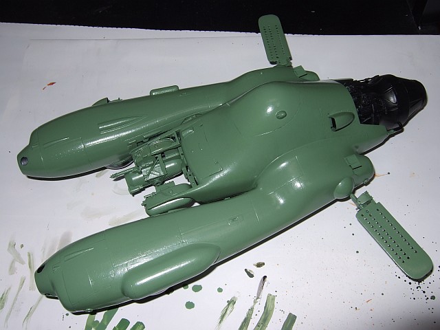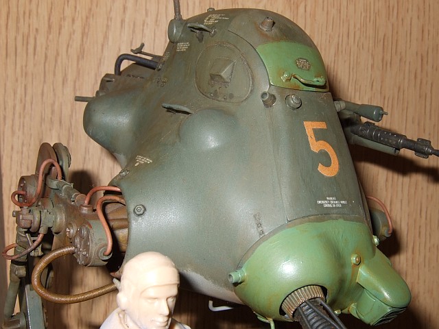 Ma.K.カラーまんまで塗ると色がいまいちのような気がして、昨日Jerryに塗ったくってみたんだけど、さらに汚してやったらどうなるか実験してみた。油絵具のバーントシェンナとイエローオーカーを適当に混ぜてターペンタインでしゃぶしゃぶにしてべちゃべちゃ流すとこんな感じになる。超簡単にサビっぽく鉄っぽく退色したっぽくできるので気に入ってる。エナメルより伸びて塗りやすいし。かなり汚く見えるけど、肉眼で見るとそこそこいい雰囲気にみえるんだこれが。一旦乾いたら溶けにくいんで、さらに色を重ねてもいいし。単にべちゃべちゃやって雰囲気が出るんだから、うまい人がやれば全然違うはず。油絵具を使ったことが無い人は是非お試しを。