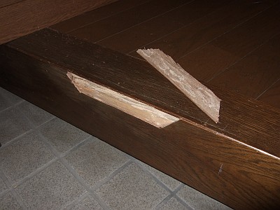 玄関の上り口の板がぺこぺこするってんで、思い切ってはがしてみた。