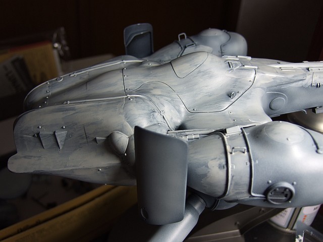 ついでに本体色も塗っちゃおうということで、グレーを吹き始めたんだけど、なんとなく筆ムラがないのはMa.Kらしくないかもという思い込みもあって、やっぱり途中でやめてしまった。
