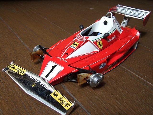 平日にちまちま組み立ててなんとかここまできた。ウイングはキットのまま。メッキもそのまま。あとはタイヤと風防だけかな。