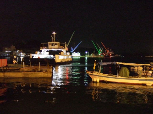 クレーンをライトアップ中の尾道の夜景。久しぶりの帰省。なんで帰ってきたかはおいといて、土曜は親戚一同と酒の席。