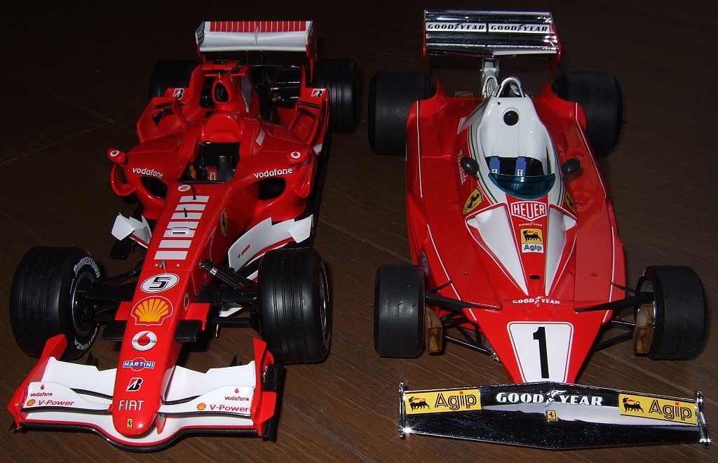 前回作った248F1と記念写真。30年の技術の差でこんなにもカタチが違う。両方共当時の最先端なわけでカッコイイ。