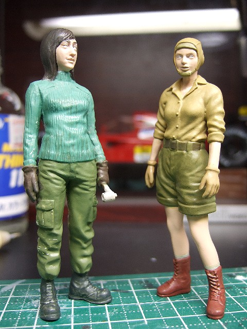 あと、ず~っと放ったらかしにしておいたフィギュアに色を塗ってみた。おねーちゃん(というか親子?)のみで、おっさんフィギュアは手付かず。フィギュアは苦手。白目をいれただけでメイクはしてない。